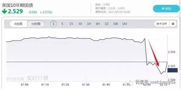 決議公布后,美元匯率下挫,美債收益率跳水,黃金美股漲。 美聯儲加息決議公布前,10年期美債收益率處于2.57%上方,決議公布后跌破2.52%,日內跌幅擴大到3%以上。2年期美債收益率同樣大跌,跌幅超過2.9%。 美國加息為哪般? 美聯儲的決定取決于兩大因素:就業和通脹。 就業方面:美國就業市場已基本達到充分就業水平。美國勞工部的數據顯示: 2月份美國非農部門新增就業崗位23.5萬個,遠高于維持失業率不變所需的7.5萬至15萬個的水平;當月失業率降至4.7%,低于美聯儲預計的4.8%的長期正常水平。 通脹方面:美國通脹率正逐步靠近美聯儲2%的目標。1月份,美聯儲青睞的通脹指標個人消費價格指數已同比增長1.9%,去除食品和能源的核心個人消費價格指數同比上升1.7%。隨著美國就市場進一步改善和薪資水平上漲,美國通脹壓力也將逐步上升。 息周期啟動!年內預計三次加息! 美聯儲發布的統計圖表顯示,大多數美聯儲委員認為2017、2018年各加息三次。 全球資產影響有幾多? CCTV證券資訊頻道金融研究院認為,美聯儲加息后的影響主要分成兩部分: 一、對美國國內來說是較為正面的影響。 加息后穩定了經濟發展速度,進一步推進了美國利率正常化,對美國國內的經濟穩定有非常重要的意義。 二、對全球影響來說是偏負面的影響 美國加息會引起全球資本向美國流動,因為利率上升后使美國資金回報率上行,對資本吸引力變強,這主要會影響到很多新興市場國家的資金被抽走。新興國家的資本外流會導致這些國家經濟發展減慢,大量外流的資本還會導致這些國家的貨幣大幅貶值。 美國加息還會帶動全球國家貨幣政策轉向,推動全球利率上行,現在很多國家正在或已經退出QE,全球利率的上行還會帶來債市轉熊,例如2016年年底美聯儲加息就間接導致了我國債市的一波危機。